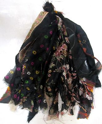 LOT PURE SILK Antique Vintage Sari REMNANT TASSELS BLACK JOURNAL 50 STRANDS DOLL