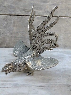 FRENCH METAL PAIR COQ COCKEREL ROOSTER STATUE FIGURINE MODEL 220gms FAB DETAIL