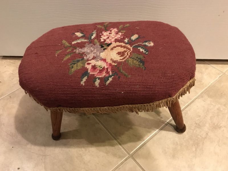 Vintage Needlepoint Footstool