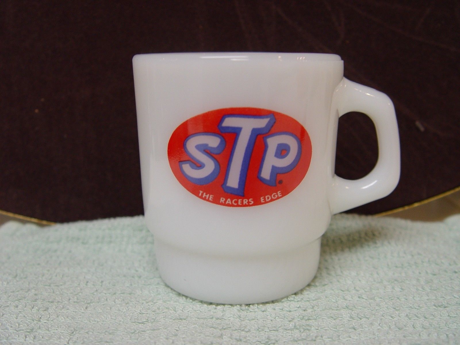 Title (ebay affiliate link): Fire-King STP Motor Oil Milk Glass Stacking Advertising Coffee Mug