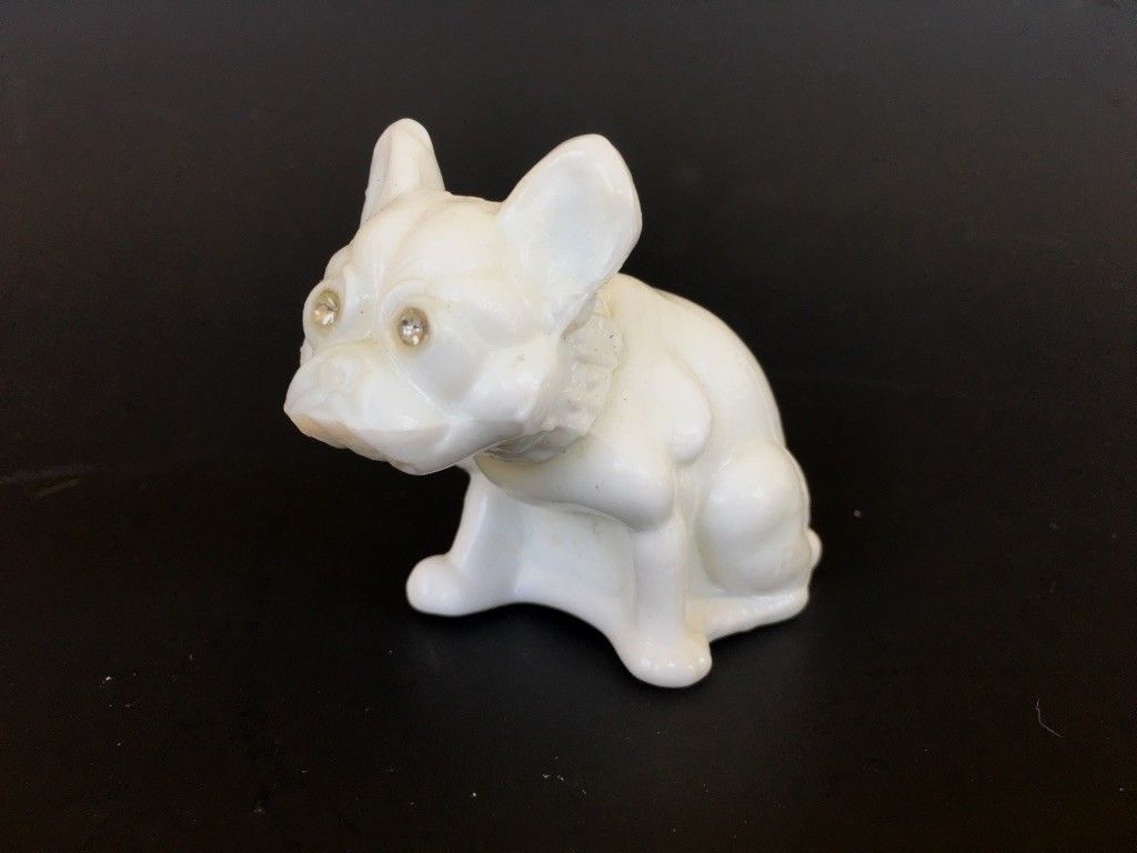 Title (ebay affiliate link): Westmoreland Rosso Bulldog, White, 2 5/8 inches, Cute, milk glass
