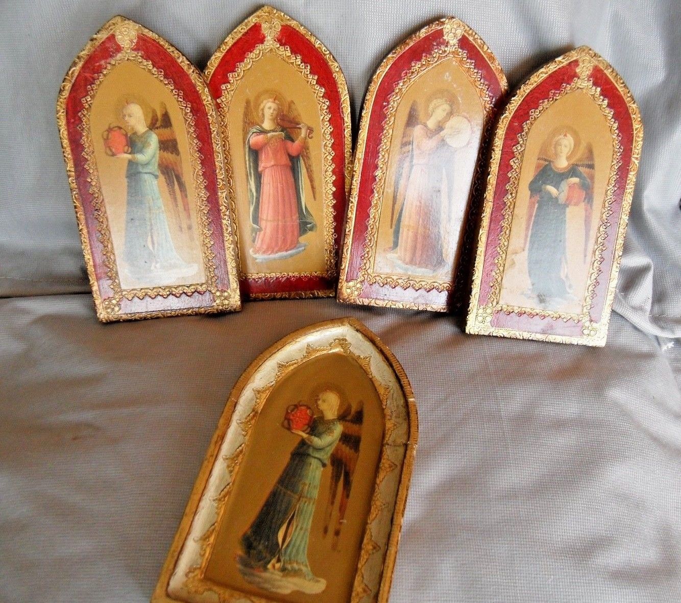Title (ebay affiliate link): Antique Florentine Musical Angel Gold Italian Wall Plaques Set of 4 and One more