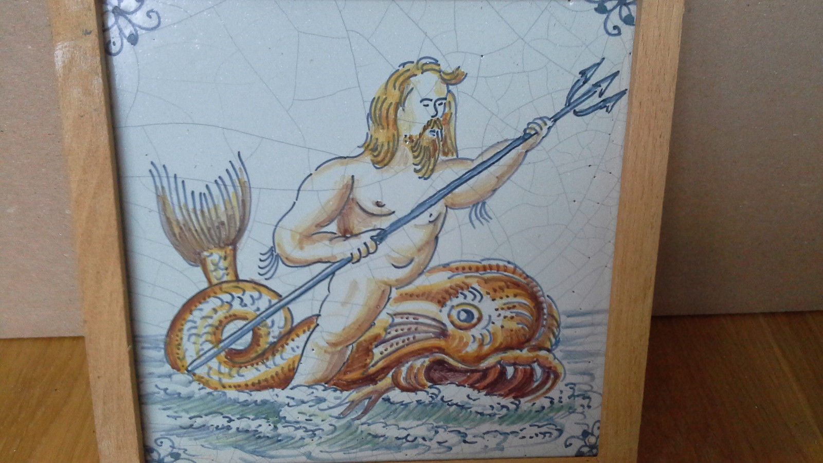 From a collector!! Antique Dutch Delft colered tile Aquarius 30/38