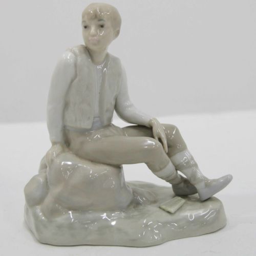 Spanish Porcelian Figurine - Boy Sitting On A Rock (Zaphir by Lladro style) #460