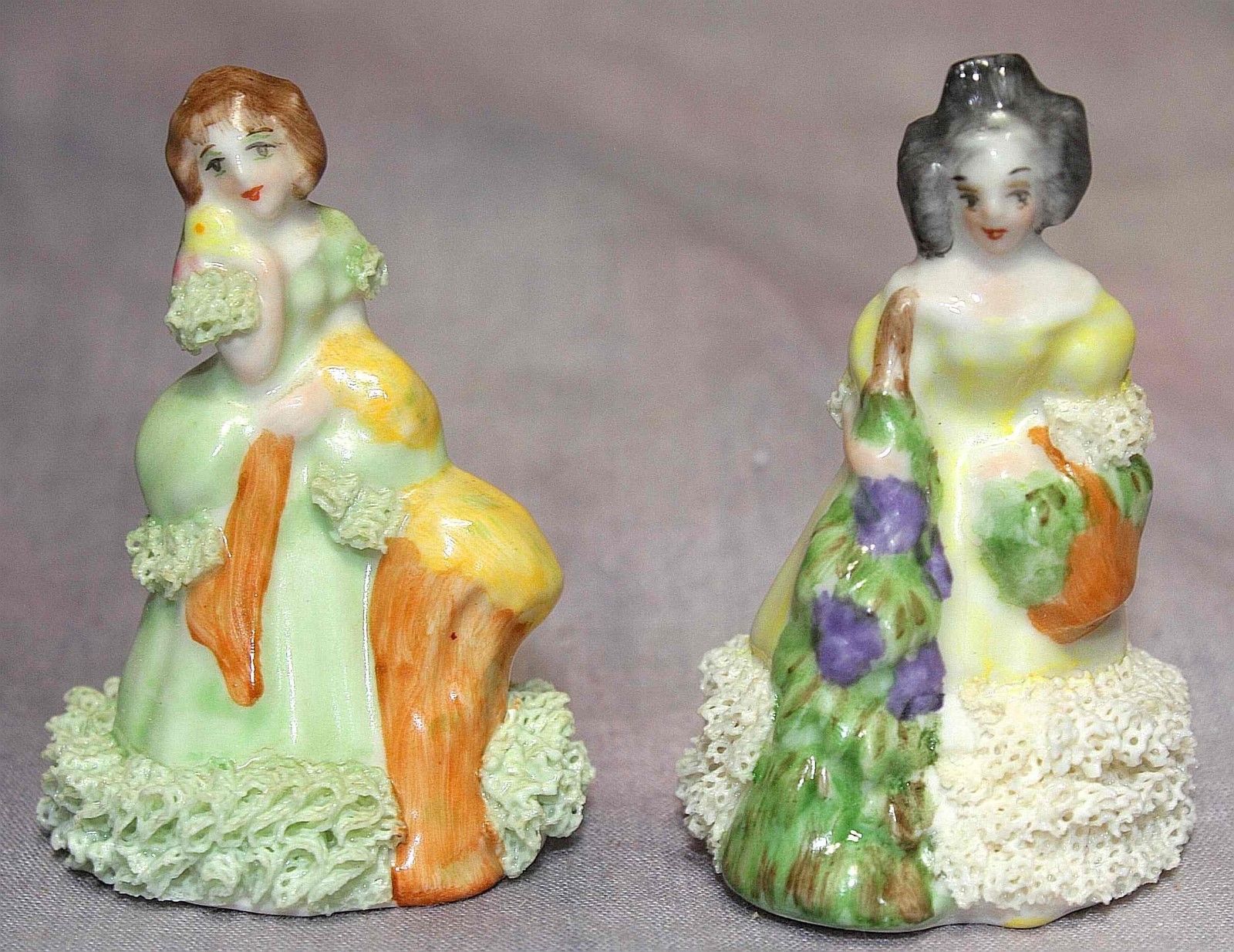 Title (ebay affiliate link): Irish Dresden Lace Porcelain Figurines 2 tiny 2 inch ladies ~ adorable!!!