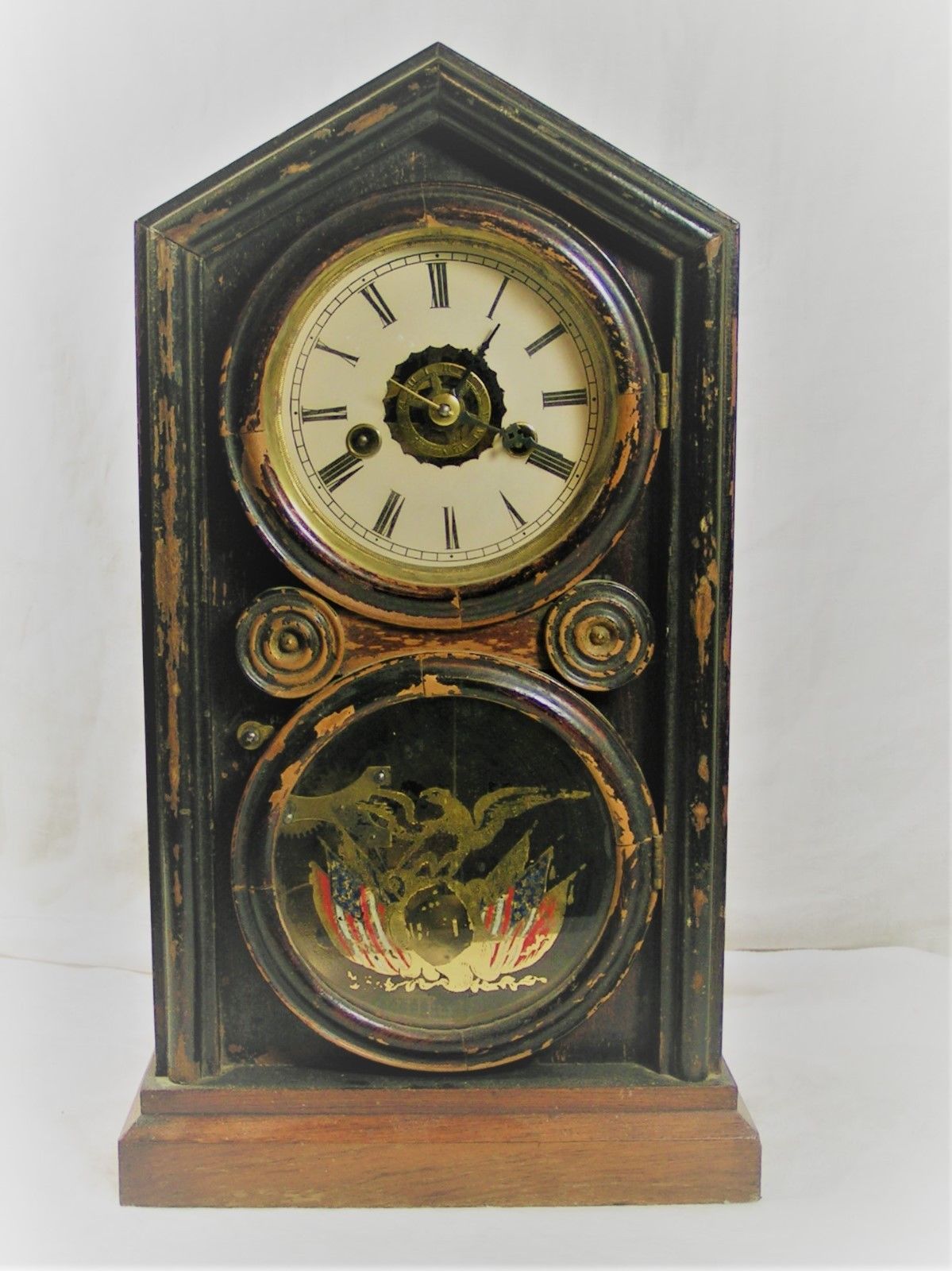 Title (ebay affiliate link): Antique E Ingraham & Co.Doric 8 day Mantel Mantle Clock Civil War Era