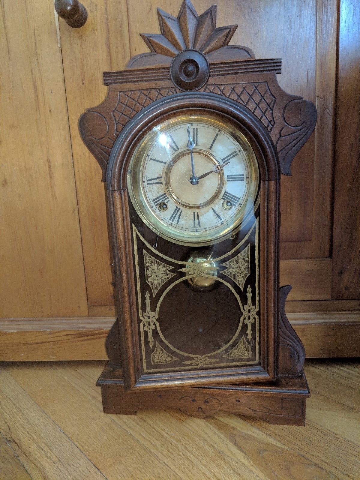 Title (ebay affiliate link): Antique Ingraham Gingerbread Clock, Original Label, Needs Work, No Key