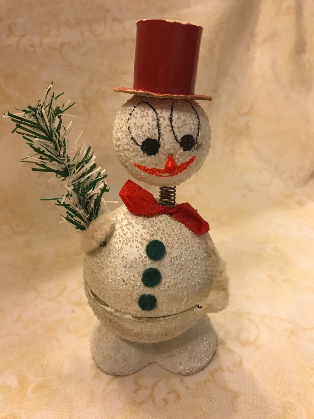 Title (ebay affiliate link): VINTAGE SNOWMAN NODDER/BOBBLEHEAD CANDY CONTAINER - GERMANY - APPROX 5 3/4"