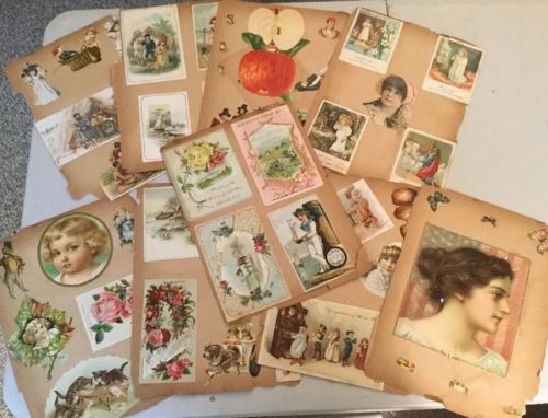 Title (ebay affiliate link): Antique Victorian Scrapbook Pages 9 with Die Cut Pictures and Advertising Cards