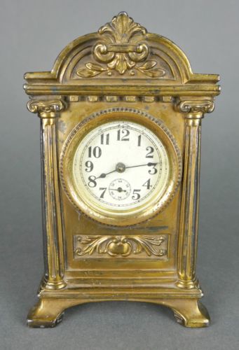 Title (ebay affiliate link): Fine Antique Art Nouveau Cast Metal Bronze Finish Ornate Mantle Table Clock