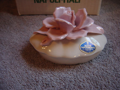 Nuova Capodimonte Napoli-Italy Rose Trinket Jar