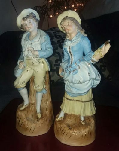 Title (ebay affiliate link): 2 ANTIQUE 12.5" BISQUE PORCELAIN FIGURINES GERMAN HEUBACH ? VICTORIAN W/ GOLD