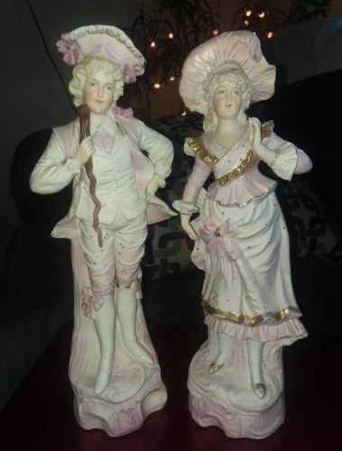 Title (ebay affiliate link): 2 ANTIQUE 13" BISQUE PORCELAIN FIGURINES GERMAN HEUBACH ? VICTORIAN W/ GOLD