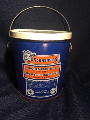 Title (ebay affiliate link): SCHNEIDERS ROASTED PORK TAILS TIN PAIL CAN WITH HANDLE 1.3KG