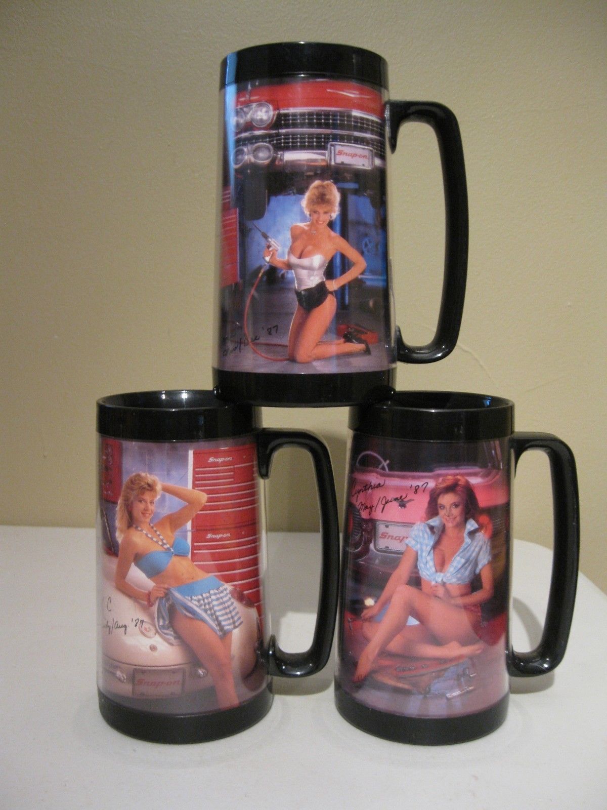 Title (ebay affiliate link): 3-1987 SNAP-ON Tools Pin Up Therno Serv Coffee Mugs/Beer Mugs