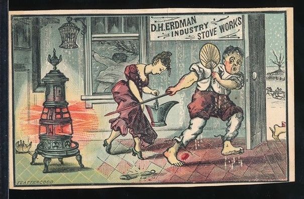 Title (ebay affiliate link): D. H. ERDMAN INDUSTRY STOVE WORKS Victorian Trade Card HOUSE TOO HOT!!