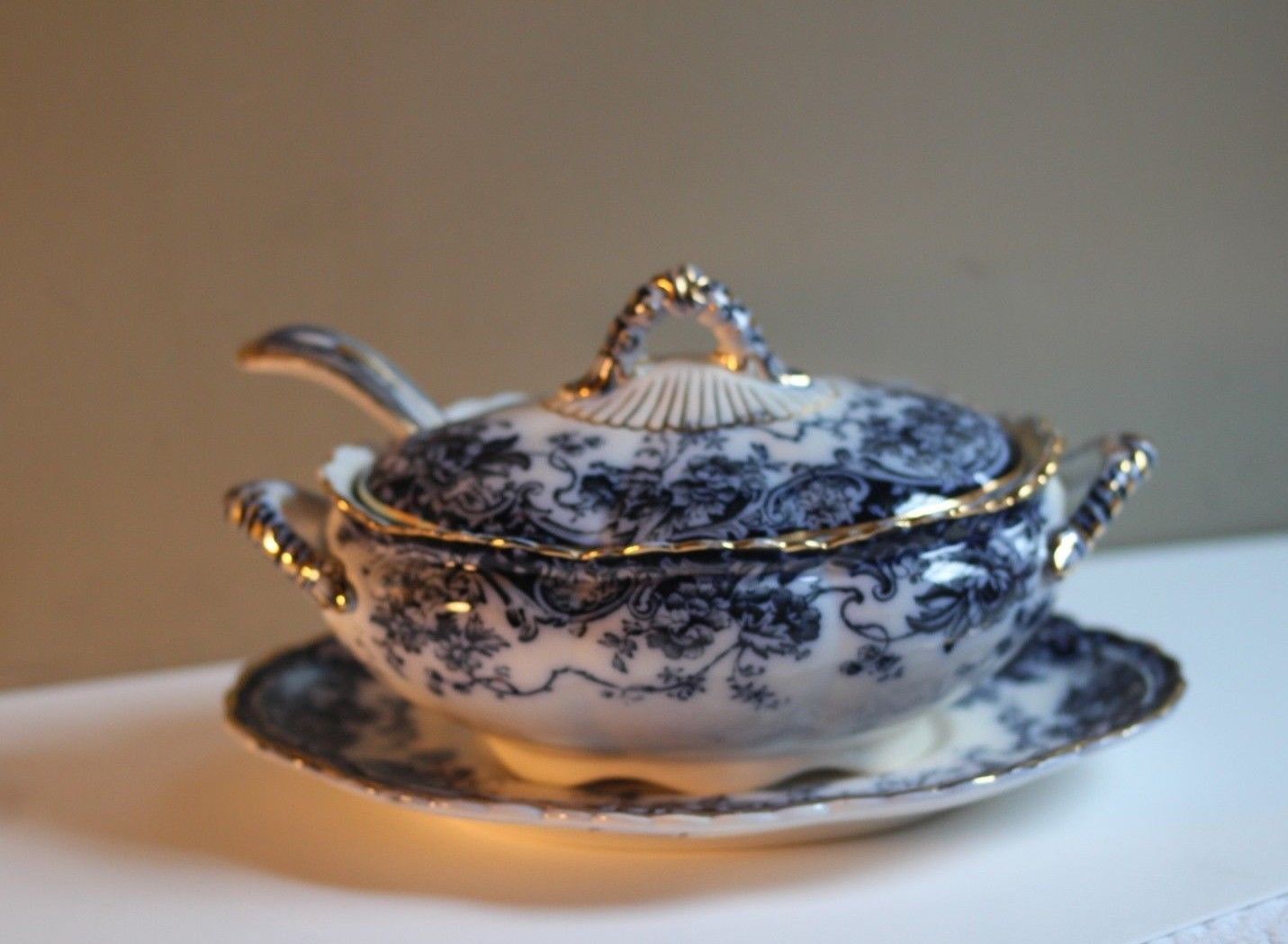 Title (ebay affiliate link): Antique 1886 Chatsworth Keeling & Co. Flow Blue Sauce Tureen, Plate & Ladle Set