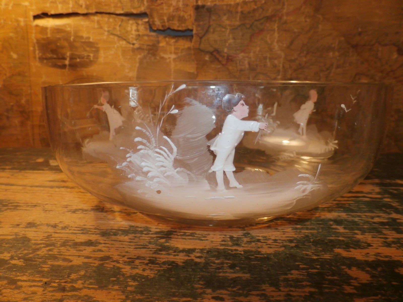Vintage Antique Blown Glass Mary Gregory Punch Bowl Centerpiece