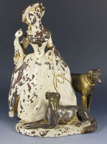 Title (ebay affiliate link): Antique Art Nouveau Painted Bronze Clad Lady & Dogs Figural Statue Doorstop yqz