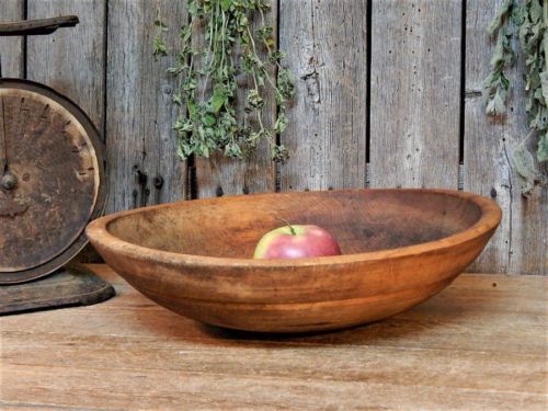 AAFA Antique Primitive Wooden Dough Bowl w/ Rim Old New England