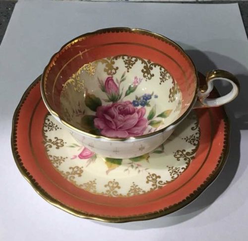 Title (ebay affiliate link): Vintage AYNSLEY ENGLAND BONE CHINA C 894 Tea Cup with Saucer/Orange Pink Flowers