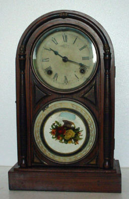 Title (ebay affiliate link): ANTIQUE COLOR GLASS PANEL ROUND TOP COLUMN MANTLE CLOCK