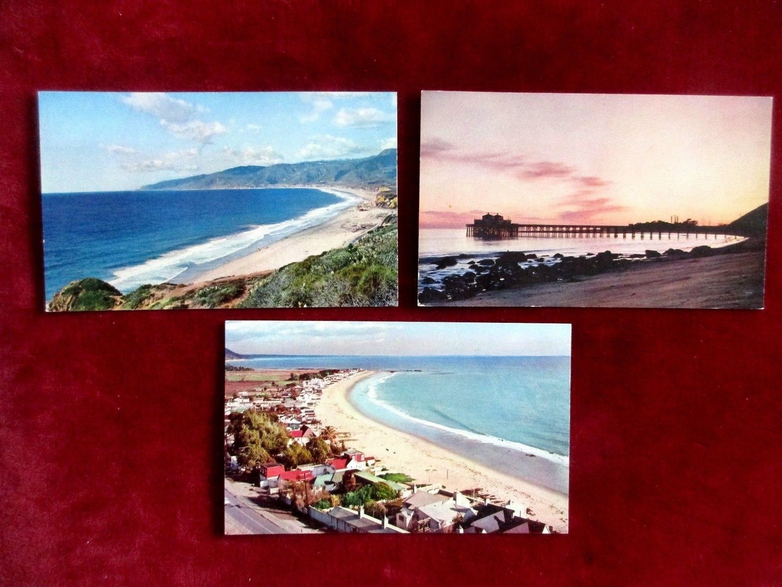 3 MALIBU CALIFORNIA POSTCARDS BY WAYNE WILCOX OF PIER BEACH MOVIE STAR HOMES