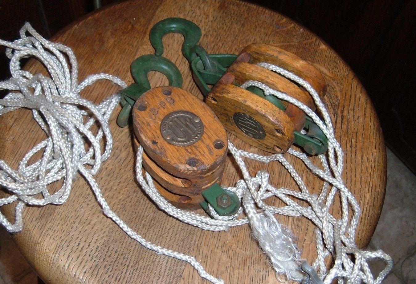 Vintage Wood and Steel Upton & Walton Double Pulley Block 3 PB