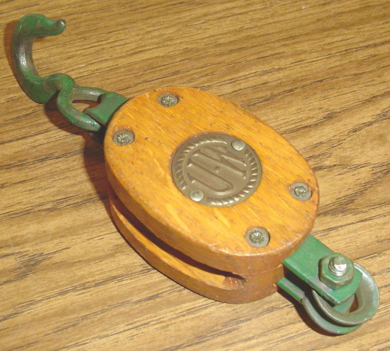 Title (ebay affiliate link): VINTAGE U-W PULLEY WOOD & METAL BLOCK & TACKLE #3 UW20