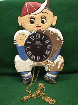 Occupied Japan Clock Wood Little Boy Playing Baseball