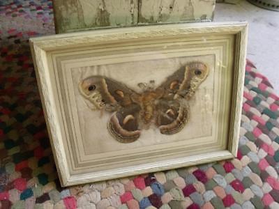 Sweet Old Shabby Primitive Vintage Framed Large Moth