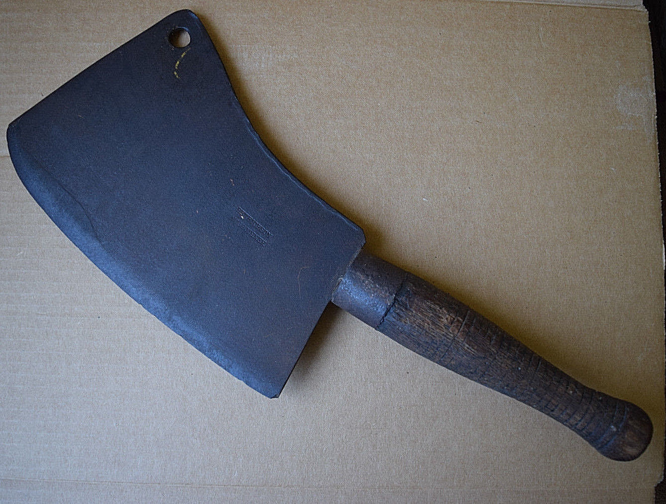 Title (ebay affiliate link): Antique Wood Handle HENRICHSON Primitive Meat Cleaver Hatchet Butcher Farm Vtg.