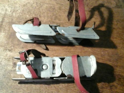 ANTIQUE ICE SKATES JACK AND JILL RED LEATHER STRAPS 7 INCHES ADJUSTS