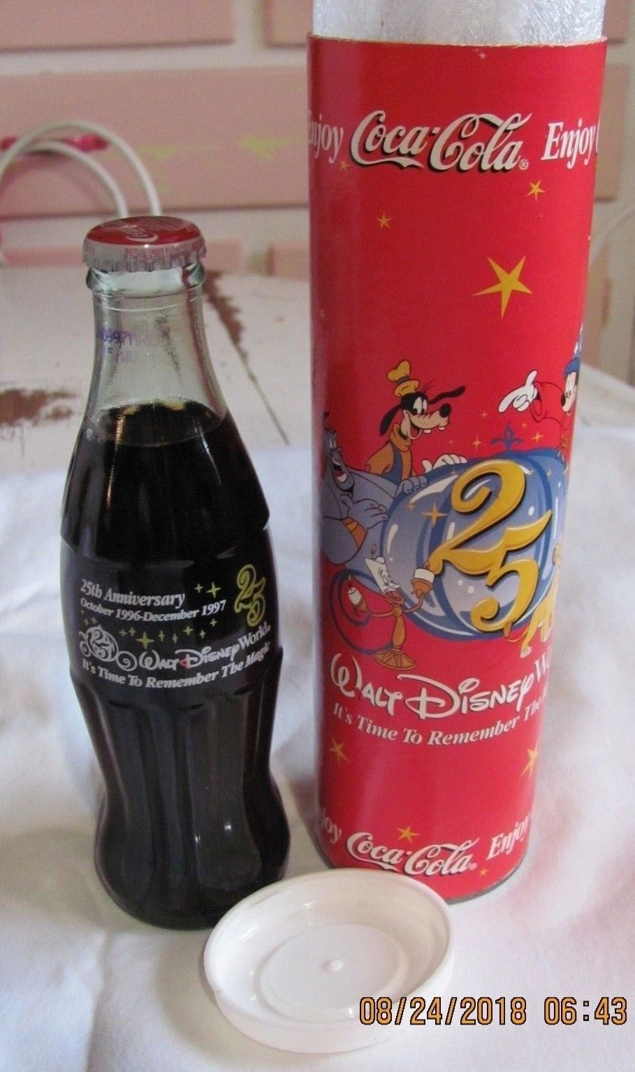Title (ebay affiliate link): Walt Disney World 25th Anniversary Full Coca-cola Bottle w/ Tube