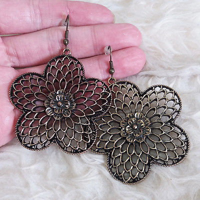 Title (ebay affiliate link): Vintage Womens Antique-Color Metal Hollow Flower Charm Dangle Drop Hook Earrings