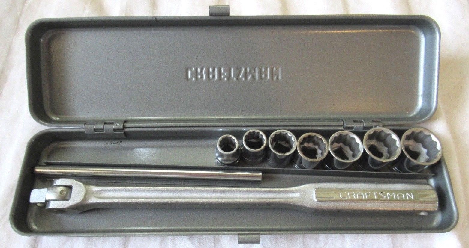 Title (ebay affiliate link): Vintage Craftsman =V= Series (9) Pc. 3/8" Dr SAE 12 Pt. Breaker Bar Socket Set