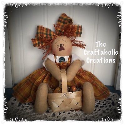 Title (ebay affiliate link): * primitive RAGGEDY ann ANNIE dolL autumn fall BASKET pumpkin gourd plaid