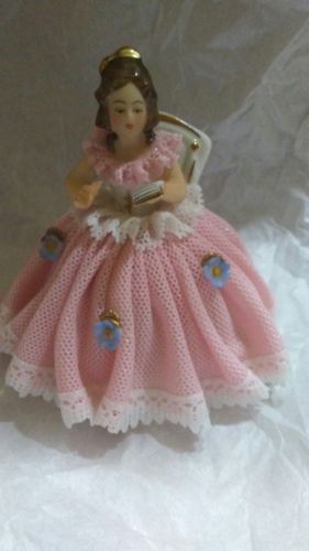 Title (ebay affiliate link): Vintage Dresden Lace Porcelain Figurine Lady Sitting In Chair With note