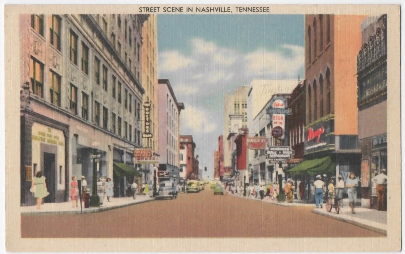 1951 Nashville Tennessee Church St Looking East Pabst Beer Sign