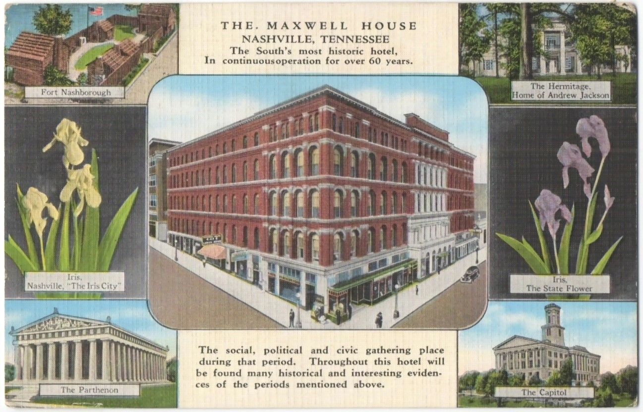 Title (ebay affiliate link): 1940s Nashville Tennessee Colorful Multiview of City Scenes "The Iris City"