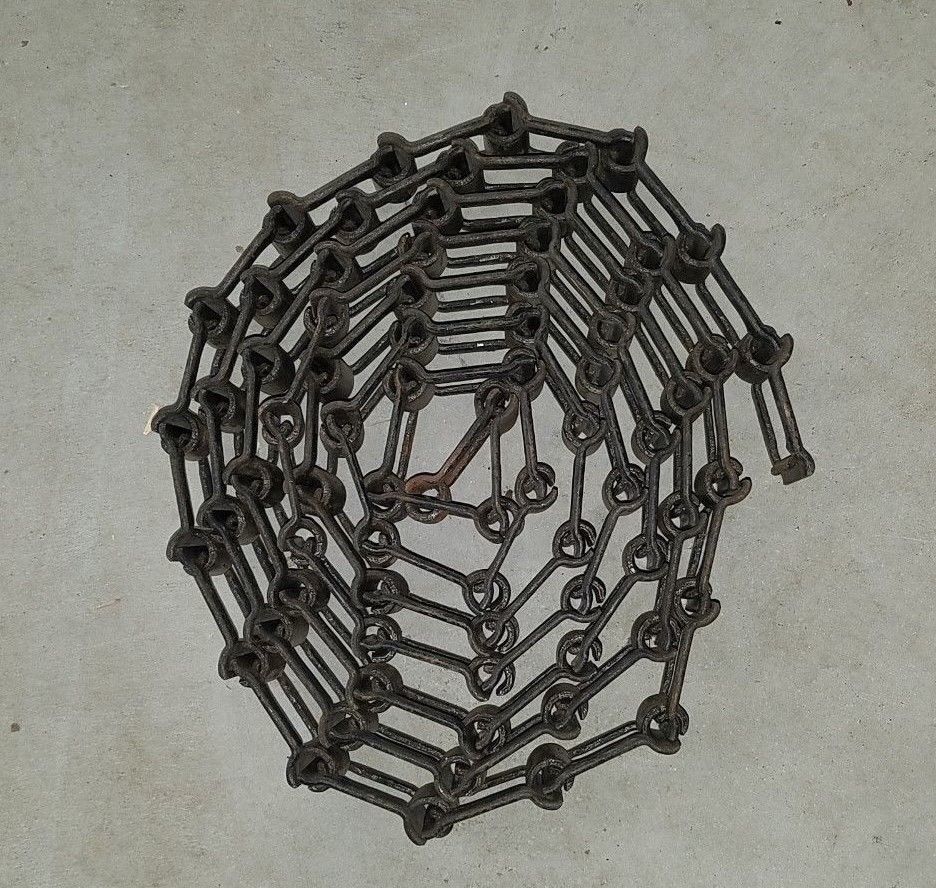 10'' Vtg GEAR CHAIN Antique Farm Square Link Iron Steel Lamp Light Art