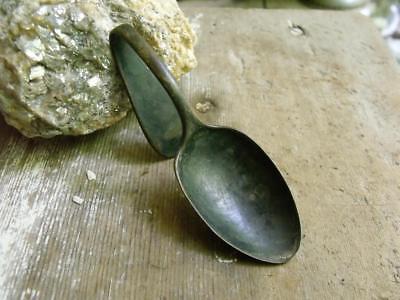 Primitive Antique Silverplate Curved Medicine Spoon Very Dark Patina