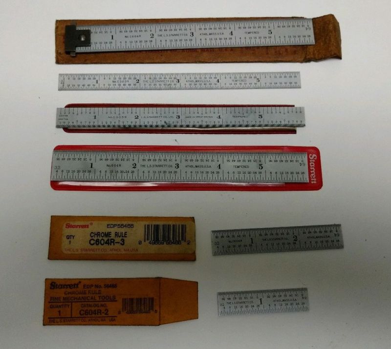 Title (ebay affiliate link): lot of 6 L.S. Starrett Machinist Rules 2" - 6" Satin Chrome Steel Rulers vintage