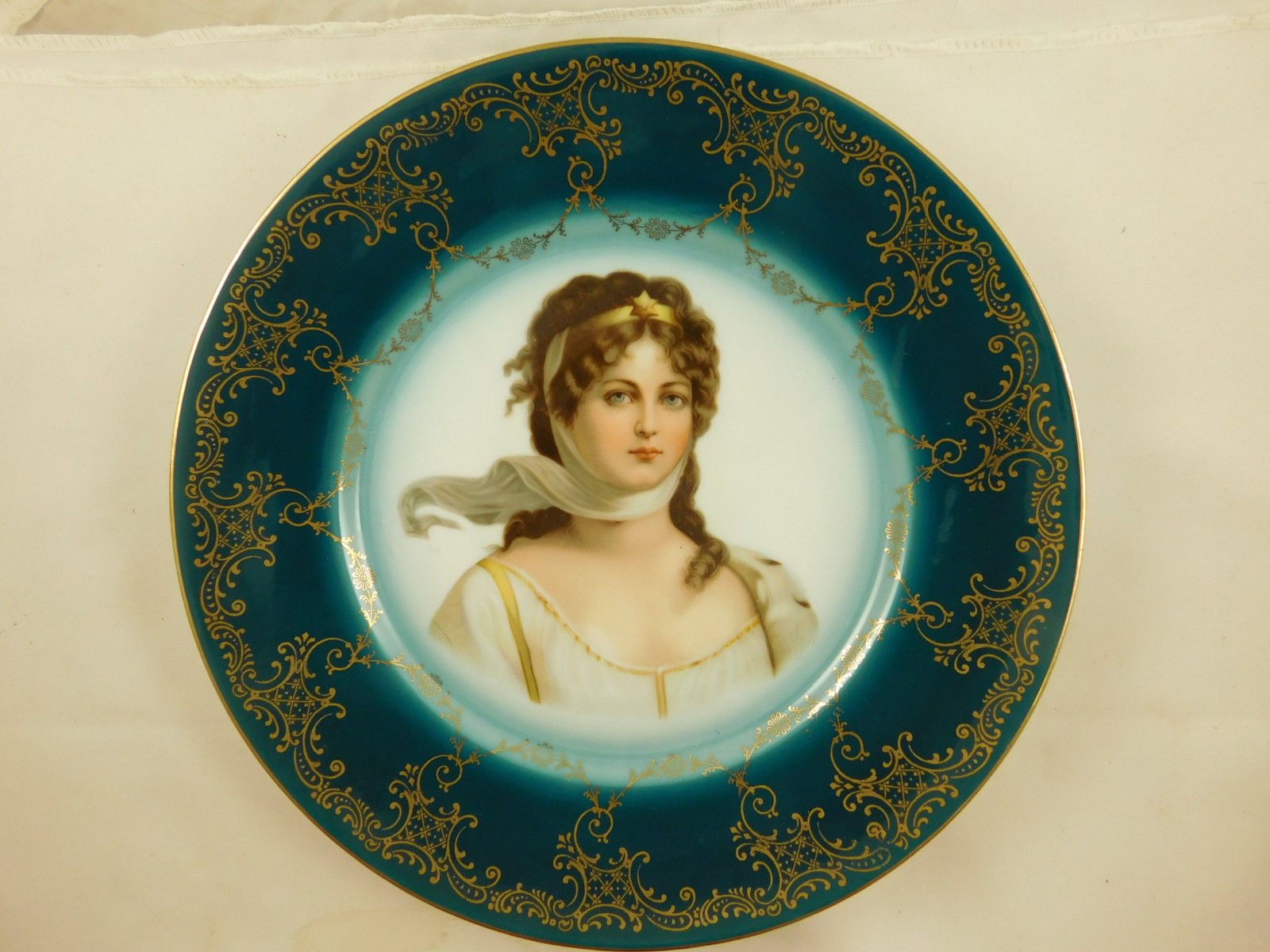 Title (ebay affiliate link): Antique Royal Vienna Beehive Portrait Plate Beautiful Woman Turquoise Gold Rim