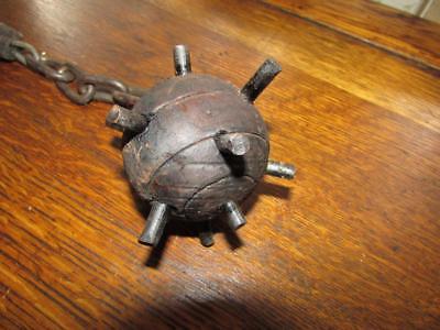 ANTIQUE WEAPON FLAIL WOODEN BALL & HANDLE METAL SPIKES & CHAIN