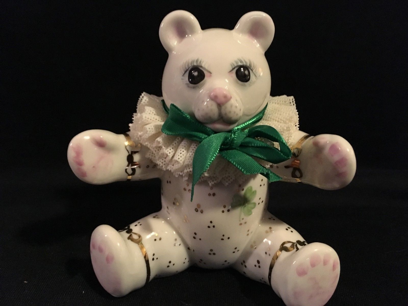 Bear Figurine Irish Dresden Porcelain Lace Collar