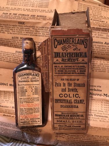 Title (ebay affiliate link): ANTIQUE CHAMBERLAINS MEDICINE BOTTLE W/BX /INSTRUCTIONS/ PRE 1906