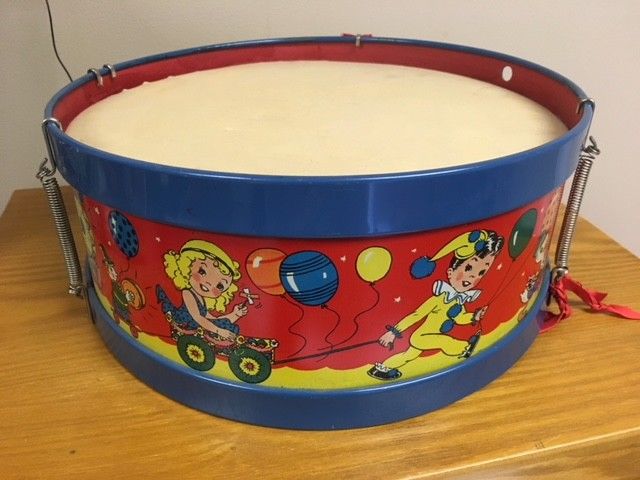 Title (ebay affiliate link): Vintage 11" diameter Ohio Art Litho Tin Carousel Drum # 163 Circus Elephant Duck