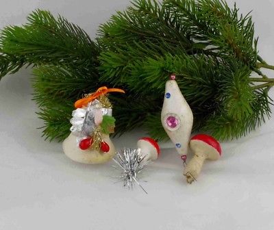 Title (ebay affiliate link): 4 x Vintage Spun Cotton Christmas Ornaments,bells,toadstools