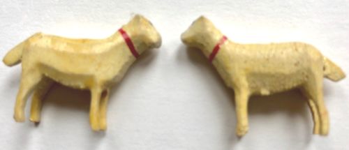 Title (ebay affiliate link): 2 Great Folk Art Wood Carved Putz Scene Miniature Sheep (1") German Erzgebirge